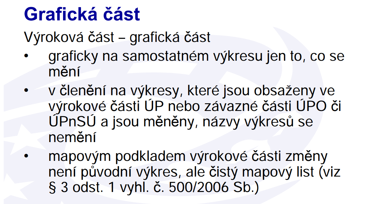 Podle § 60 odst. 1 stavebního zákona rovněž platí, že mapovými podklady pro územně plánovací činnost (dále jen “mapové podklady”) jsou katastrální mapa a základní státní mapová díla; mapovým podkladem pro pořízení regulačního plánu může být též polohopisné a výškopisné zaměření řešeného území. Nikde se neuvádí, že by mapovým podkladem změny byly výkresy územního plánu. Tak proč se od toho, co říká MMR, odchylovat?