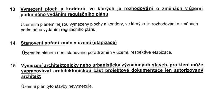 Je zjevné, že ač byla etapizace do územního plánu právě změnou doplněna, v „textové“ části změny se to vůbec neprojevilo barevným rozlišením a dotčení vlastníci si vůbec nemuseli všimnout, že se regulace tak významně mění.