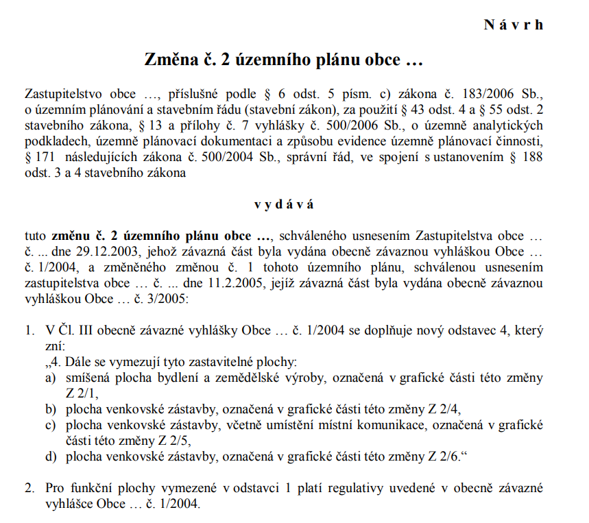 Díky pochopení toho, co za správní akt je opatření obecné povahy a jak to funguje ve vztahu k územnímu plánu, si můžeme vysvětlit, jak se správně připraví změna, jak její grafická, tak textová část. Odůvodnění změny zatím necháme stranou.