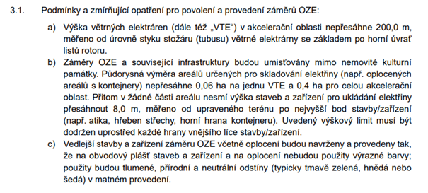 Akcelerační zóny reguluje jak samotná Změna č. 2 ÚRP, tak územní opatření k jednotlivým akceleračním zónám. Právě v těchto územích opatřeních jsou podmínky, které budou muset OZE splnit.